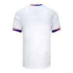 are carefully designed. The collar and cuffs of the nice 24/25 USA home soccer kit are designed with a unique red, blue and white. Once again opting for a clean white base color, the new USA kit Copa America 2024 features a spirit message "One Nation, One Team". The only difference from the USWNT jersey is that the USWNT version has 4 stars on the top, representing the 4 FIFA World Cup? titles won by the USWNT.